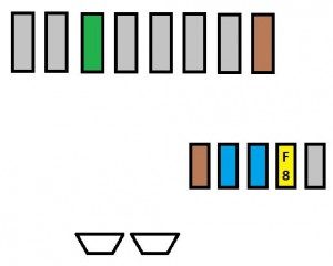 | F8 | 20 | Wyświetlacz wielofunkcyjny, radioodtwarzacz, zmieniacz płyt CD, sterowanie kierownicy, multimedia, wykrywanie niskiego ciśnienia w oponach, alarm, przyczepa |