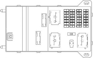 | C/B | 30 | Wyłącznik obwodu: Dach księżycowy, Opóźnione wyposażenie dodatkowe (bezpiecznik SJB 12, tylne szyby zasilające) |