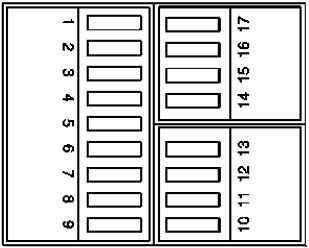 | 13 | Przekaźnik kombinowany: Silnik wycieraczki (obwód interwałowy) Sterowanie odszraniania tylnej szyby (od 1.9.96 do 31.5.97) Odmrażarka tylnego okna (od 1.9.95 do 31.8.96): Wyłącznik odszraniania tylnej szyby Przełącznik kombinowany: Lampa czołowa Silnik wycieraczek szyby przedniej Pompa spryskiwacza szyby przedniej Silnik wycieraczki Silnik wycieraczki (obwód interwałowy) |