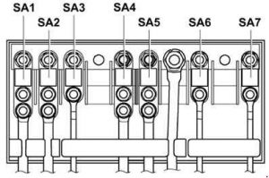 | 40 | 20 | Bezpieczniki na uchwycie bezpiecznika C -SC- Bezpiecznik 1 na uchwycie bezpiecznika -SC1- do -SC6- Bezpiecznik 9 na uchwycie bezpiecznika -SC9- do -SC16- Bezpiecznik 25 na uchwycie bezpiecznika -SC25- do -SC27- |
