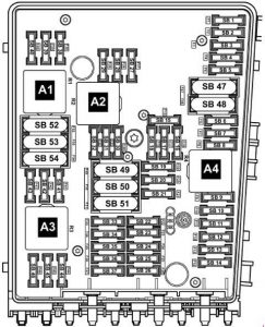 | 4 | 70 | Pokładowa jednostka sterująca zasilaniem -J519- X-stykowy przekaźnik nadmiarowy -J59- Bezpiecznik 7 na uchwycie bezpiecznika -SC7- Bezpiecznik 8 na uchwycie bezpiecznika -SC8- Bezpiecznik 28 na uchwycie bezpiecznika -SC28- do -SC35- |