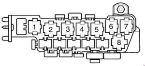 Rozmieszczenie przekaźników i bezpieczników na panelu przekaźników